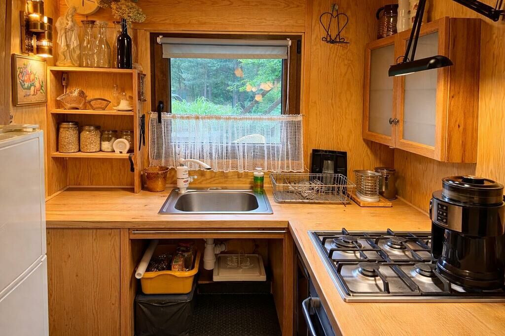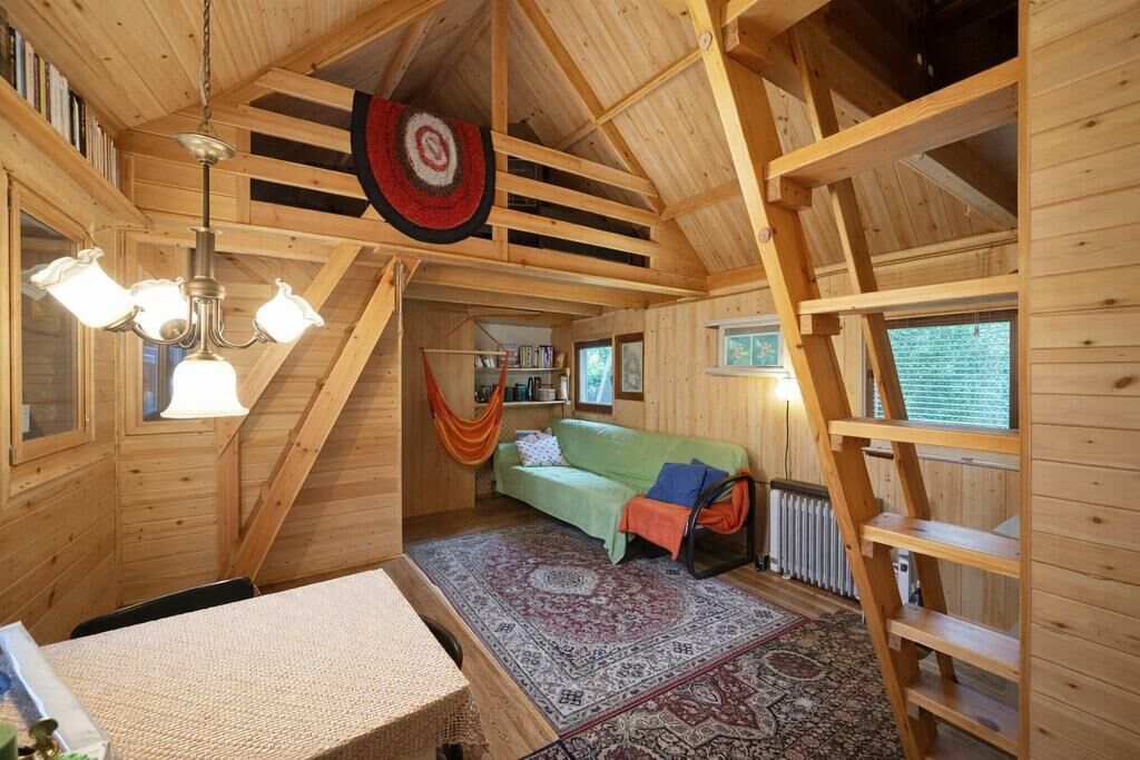 wyposażony w kuchnię i łazienkę, a do tego dwie antresole, które